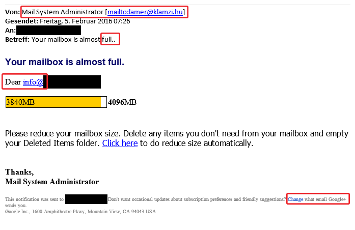 - Die E-Mail kommt von einer merkwürdigen Absenderadresse. Diese ist oft erst dann ersichtlich, wenn man sich die Details anzeigen lässt.