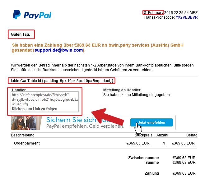 - Die E-Mail enthält falsche Daten und/oder ein falsches Firmenlogo