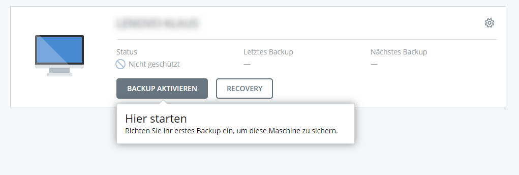 Zur installierten Clientsoftware gehört auch der „Backup Monitor“. Sie können auch von hier aus das Backup aktivieren.