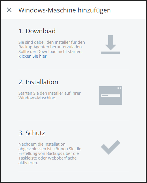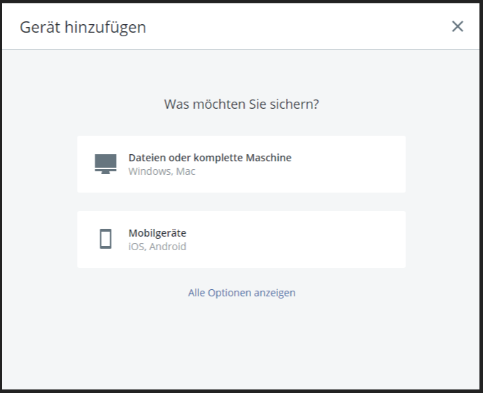 Um die Backuplösung in Betrieb zu nehmen muss eine Software auf dem jeweiligen Gerät installiert werden. Dazu wählen Sie nun das Gerät, welches gesichert werden soll, aus.