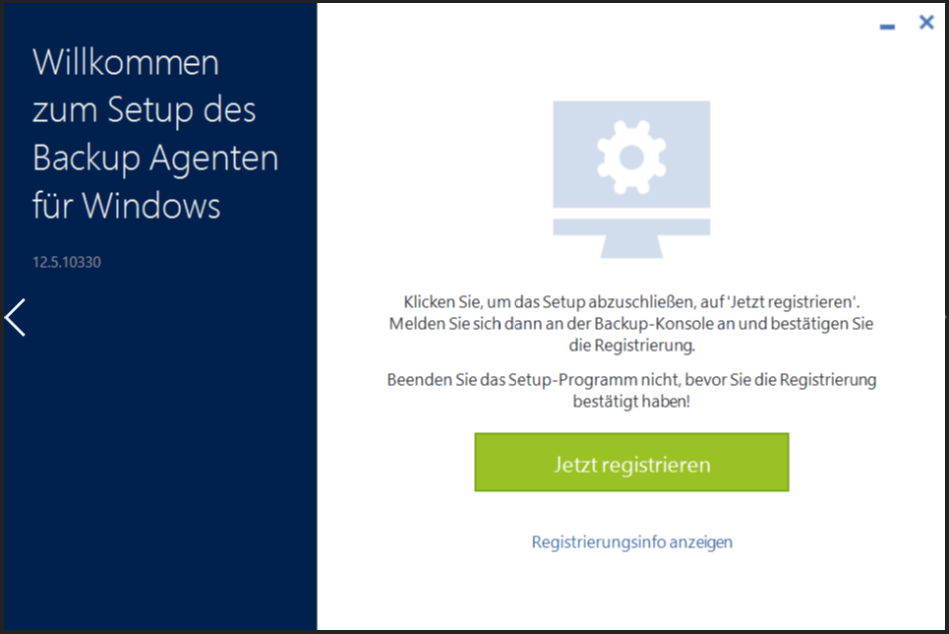 Hierbei werden Sie aufgefordert das Gerät noch zu registrieren, weitere Infos finden Sie im folgenden Punkt. - Gerät registrieren; nun muss das zu sichernde Gerät noch im Backup-System registriert werden. Der Dialog sieht folgendermaßen aus:
