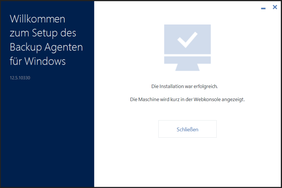Sobald die Registrierung der Maschine erfolgt ist, sollte die Installation der Software abgeschlossen sein. Sie sollten nun folgenden Dialog sehen: