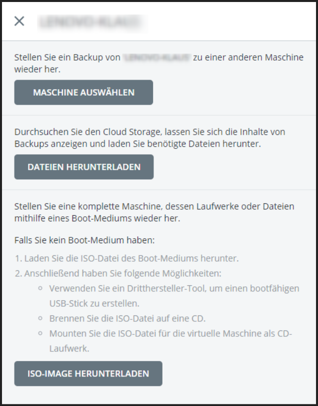 Wiederherstellung von Daten aus Limitis Cloud Backup
