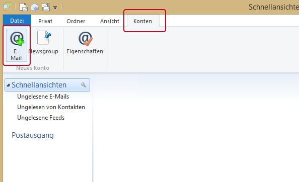 1. Klicken Sie im Reiter Konten auf E-Mail