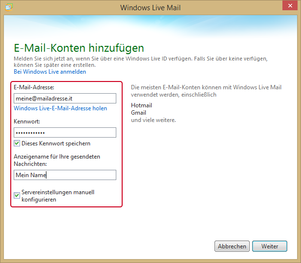 E-Mail Konfiguration Windows Live Mail