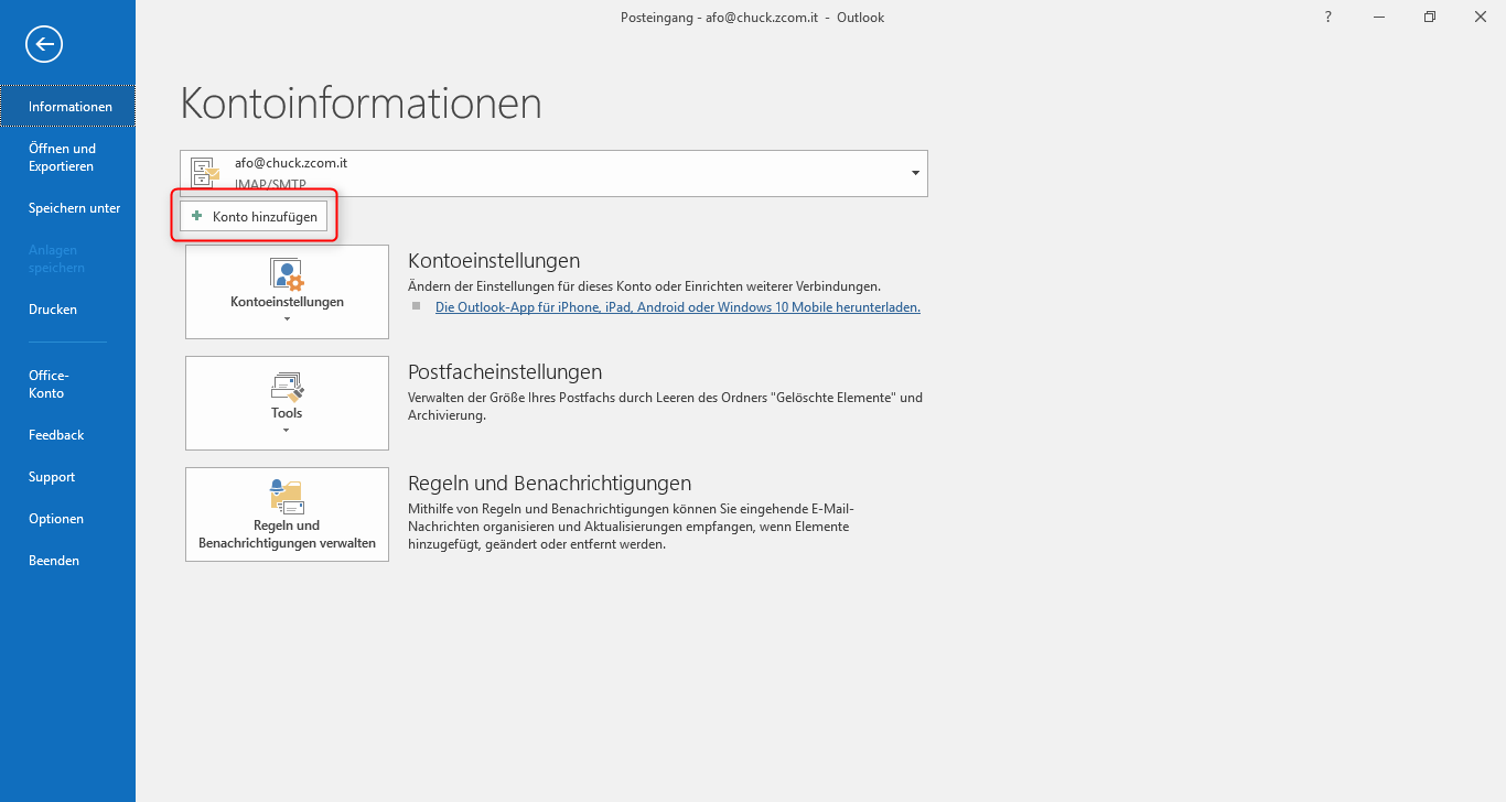 1. Klicken Sie auf "Datei" und "Konto hinzufügen".