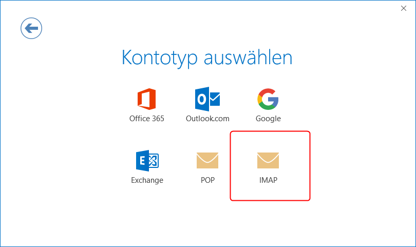 3. Klicken Sie nun POP oder IMAP. Welches der Unterschied zwischen POP und IMAP ist, lesen Sie hier.